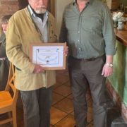 Unser Vizepräsident BJM Johann Priemaier gratulierte Herrn Hr. MF. KR. Erwin Angelbauer ganz herzliche zu 60 Jahre Mitgliedschaft beim Österr. Kurzhaarklub.