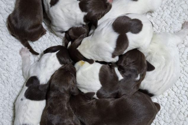 Wurfmeldung: am 24.10.2025 warf die Hündin Zenya vom Nonnenhaus nach dem Rüden Lucifer vom Höllental. 10 Welpen, 6 Rüden und 4 Hündinnen (Braun & Braunschimmel)